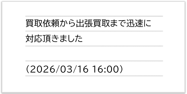 買取のご依頼から出張買取までスムーズにご利用いただけたとのこと、スタッフ一同大変嬉しく存じます。